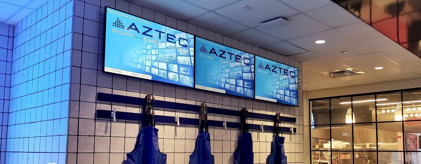 Aztec provides digital signage solutions to organizations in every field. Digital signage is a technology that almost every modern organization could benefit from in some shape or form. This innovation allows for the simple dissemination of information among employees, co-workers, customers, visiting clients, and more. The best part? Users can control their digital signage solutions remotely. Whatever industry you’re in, Aztec Sound is ready to assist you with digital signage installation and/or design services.